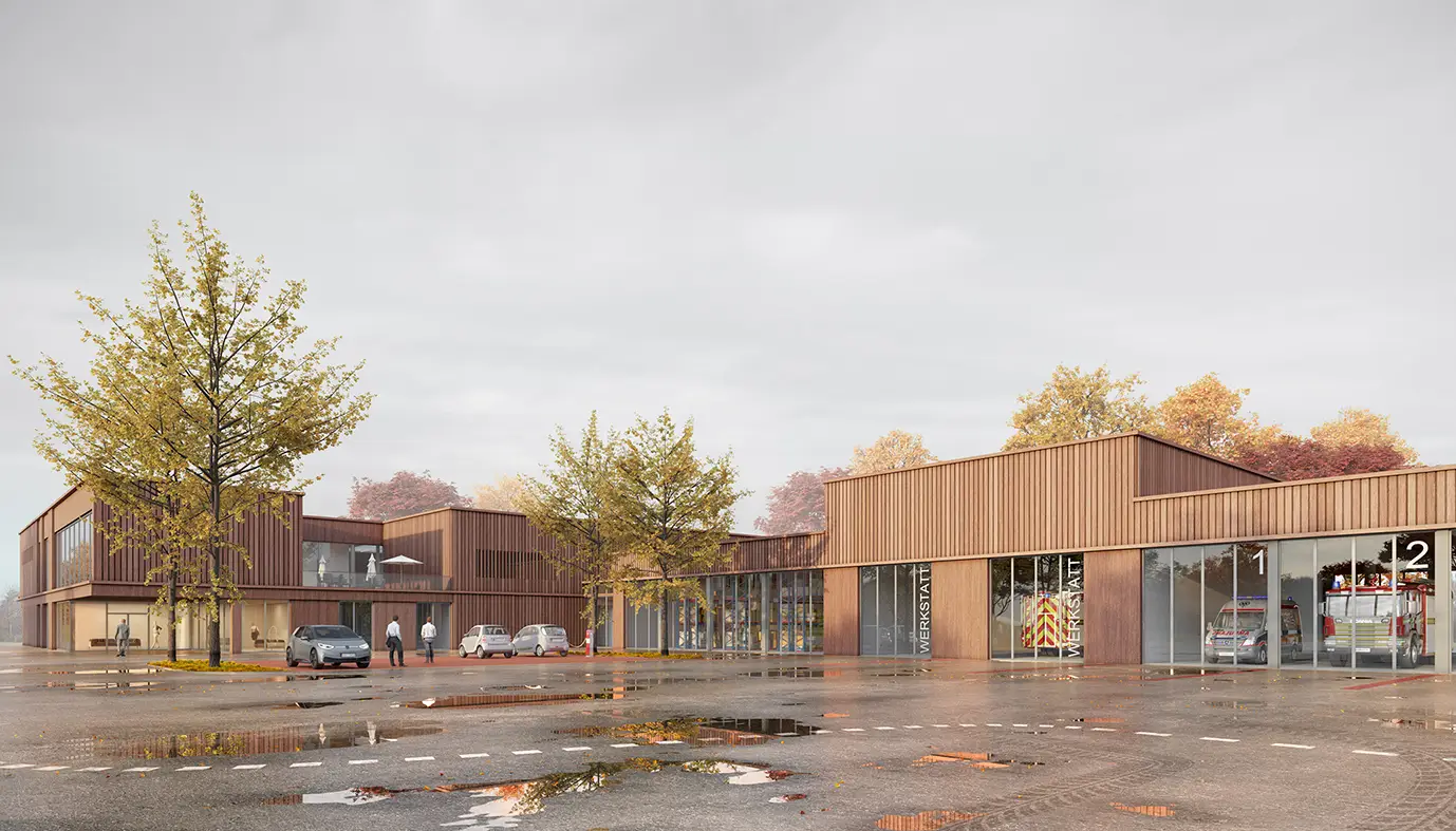 Wir freuen uns über die Auszeichnung mit einem zweiten Preis für unseren Entwurf eines Feuerwehrgebäudes mit