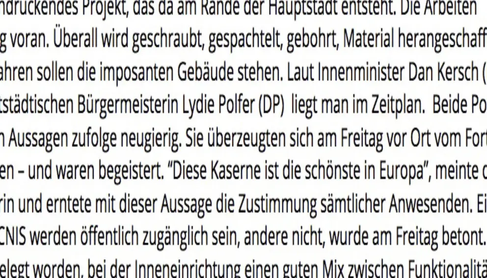 Hoher Besuch auf der Baustelle! Diesen Freitag besuchten der Luxemburger Innenminister Dan Kersch (LSAP) und die hauptstädtische Bürgermeisterin Lydie Polfer (DP) unser Projekt CNIS, dessen Rohbau in Kürze fertiggestellt sein wird. Das Resümee: "Diese Kaserne ist die schönste in Europa..." / April. 2018