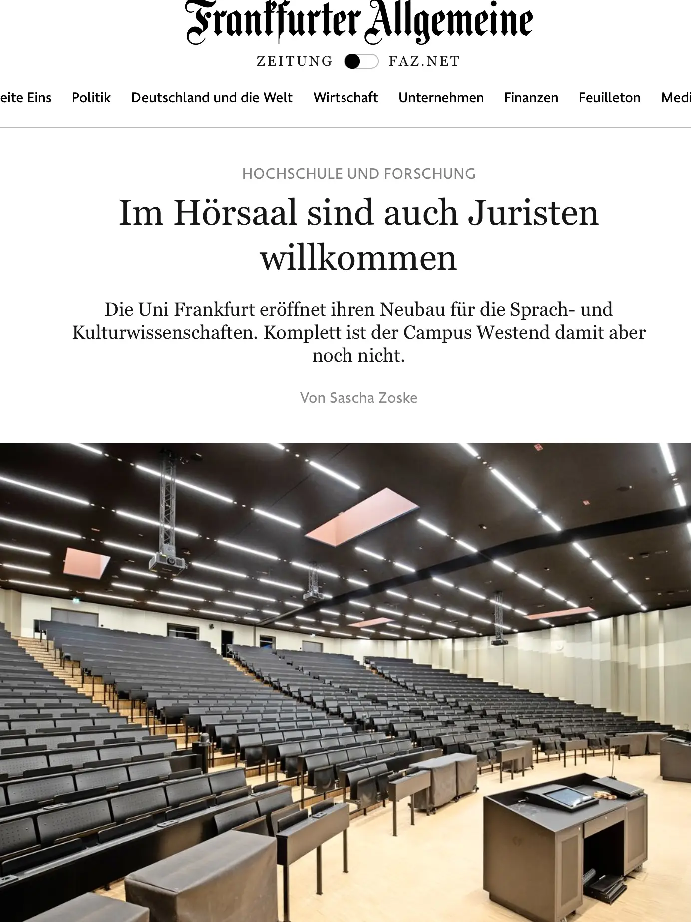 FAZ-Artikel zum Neubau Sprach- u. Kulturwissenschaften