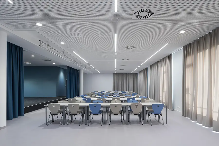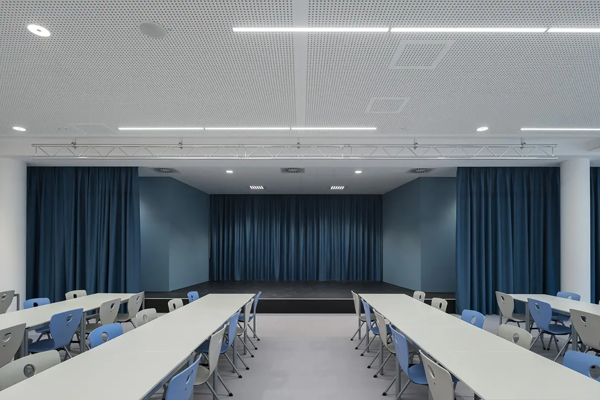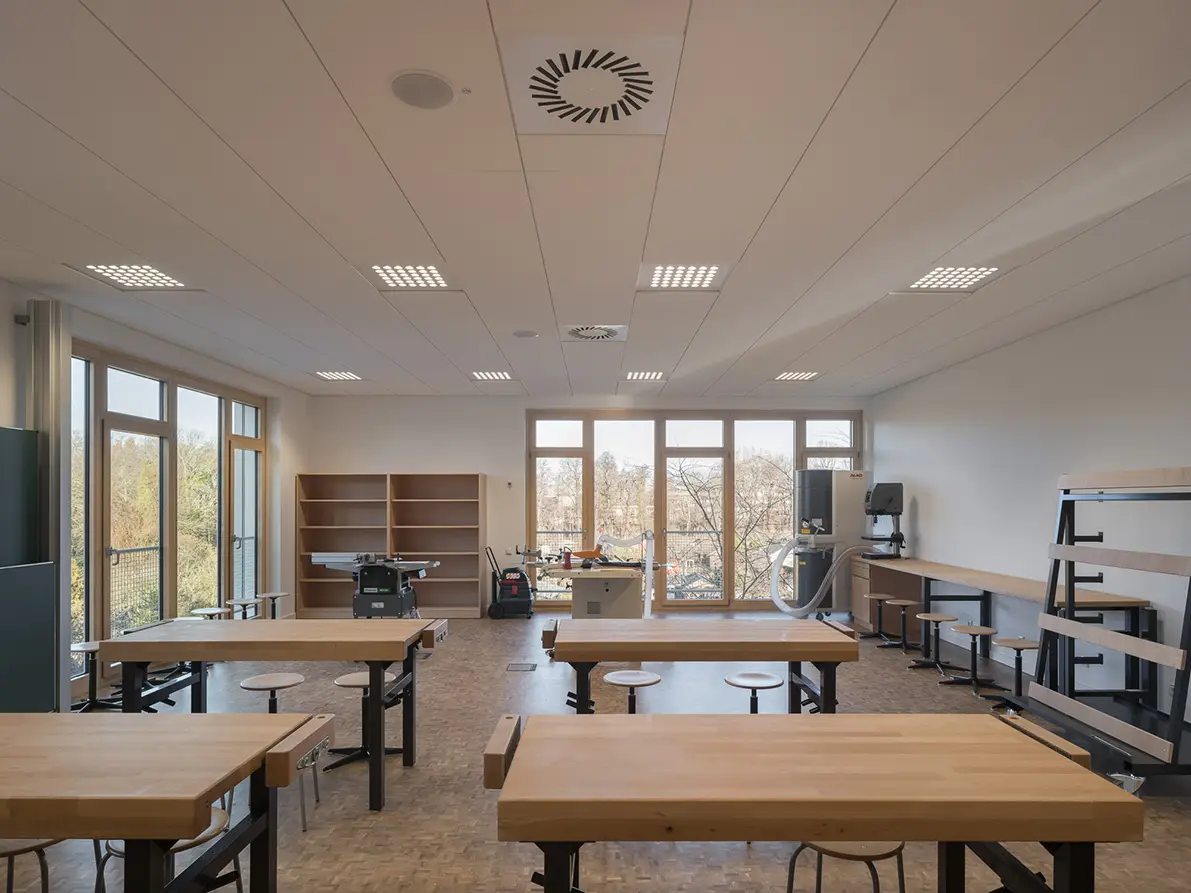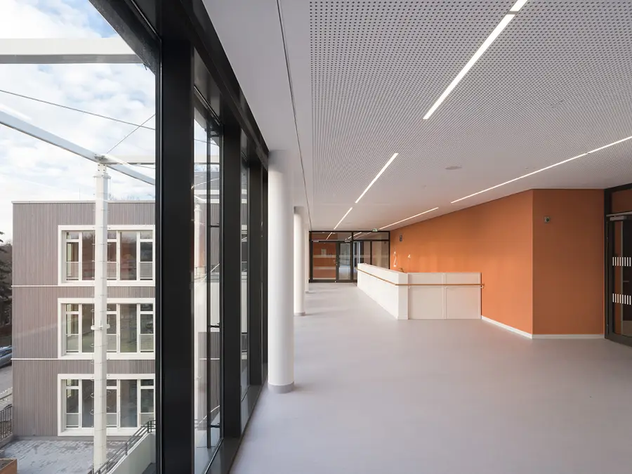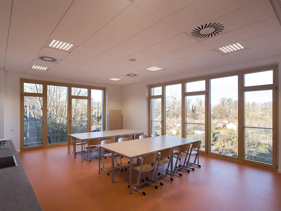 Die Konzeption der Panke-Schule als Schule mit Förderschwerpunkt "Geistige Entwicklung" verlangt besondere Rücksichtnahme auf die vielfältigen Beeinträchtigungen der Schüler. Ihnen bietet das dreigeschossige Gebäude eine sehr gute Orientierung und eine klare Struktur mit großzügigen Bewegungsflächen.