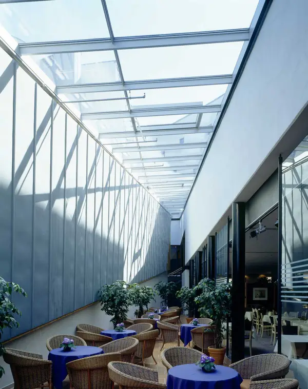 Die Innenräume stellen den besonderen architektonischen Reiz des Hotels dar. Aufgrund der besonderen Entwurfskonzeption sind sie in ihrer Dimension und räumlichen Qualität und Vielfalt für ein Hotel dieser Kategorie sehr ungewöhnlich.