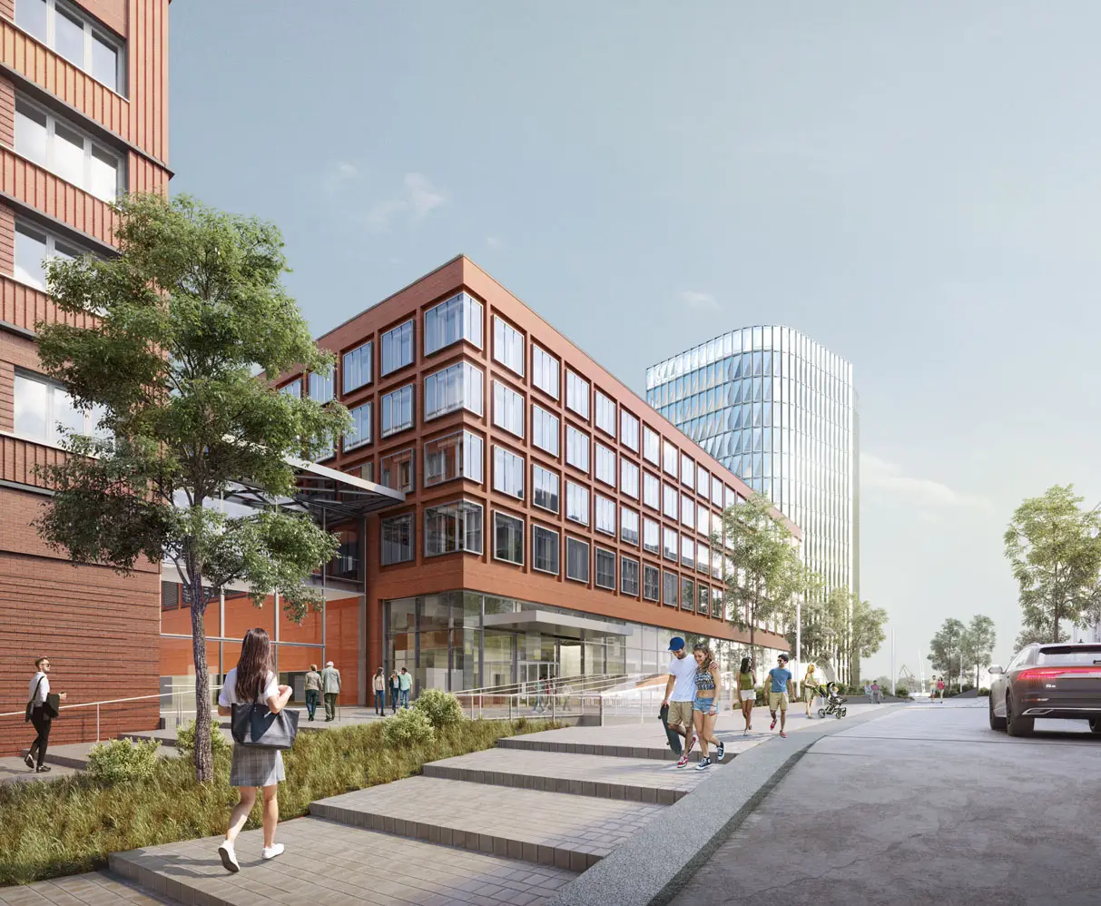 Das Gebäude F4, ein an der San Francisco Straße gelegenes Baufeld mit Einzelhandel- und Hotelnutzung, wird von BLK2-Architekten gestaltet.
