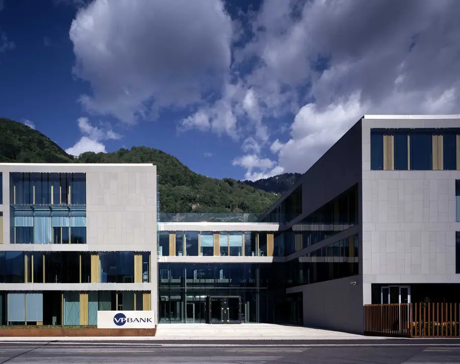 Das Zentrum Triesen der VP Bank mit Hauptsitz in Vaduz, beinhaltet primär Back Office Arbeitsplätze mit Sonderbereichen wie Bistro, Sitzungs- und Schulungsbereichen.