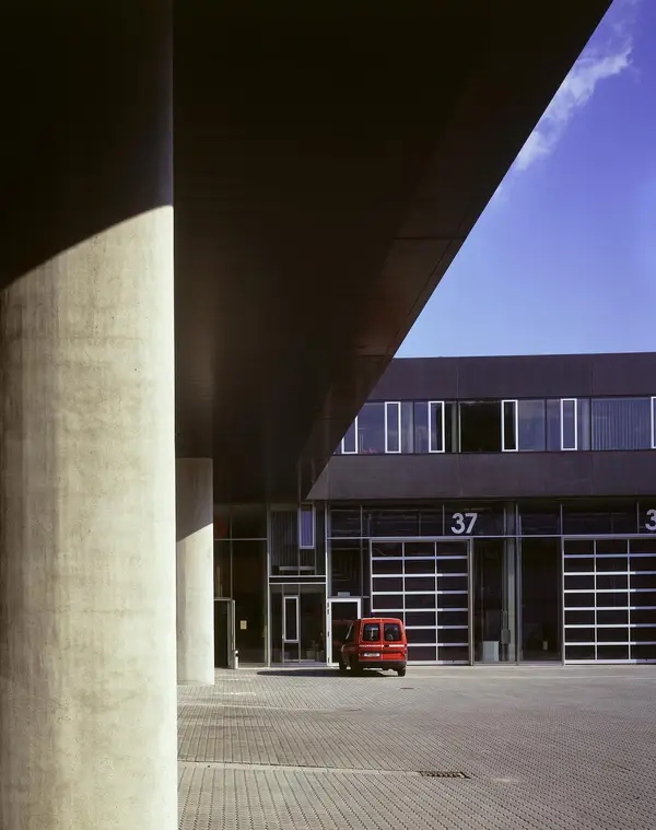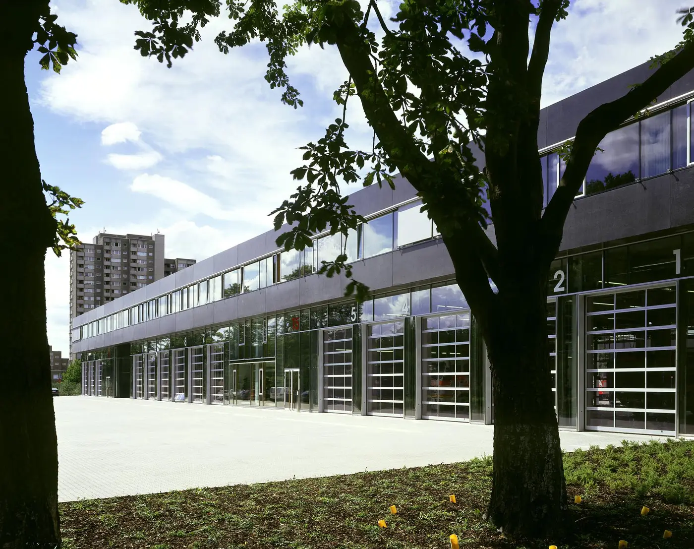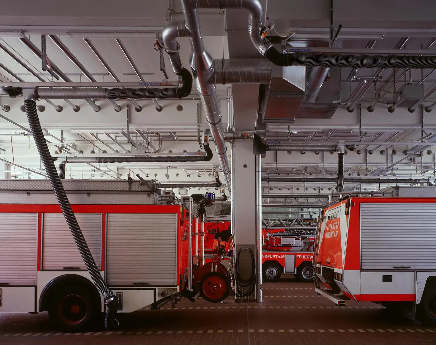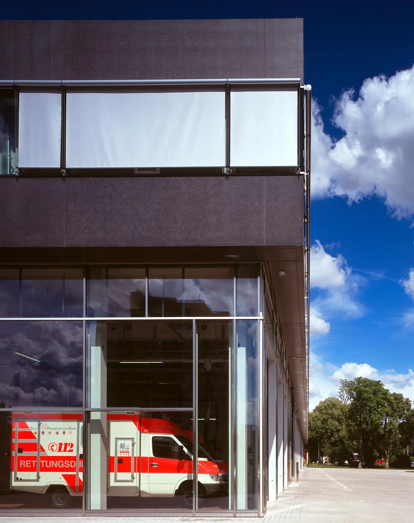 Aus organisatorischen und einsatztaktischen Überlegungen war für die Frankfurter Berufsfeuerwehr der Neubau eines integrierten Zentrums für den Brandschutz, Katastrophenschutz und Rettungsdienst erforderlich. Die besondere Aufgabe der Feuerwehr - der Schutz - und das integrative Konzept des Zentrums bilden in den klassischen architektonischen Metaphern „Hof“ und „Dach“ das architektonische Thema des Entwurfes.