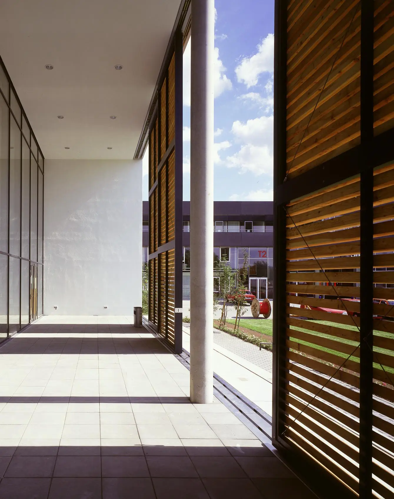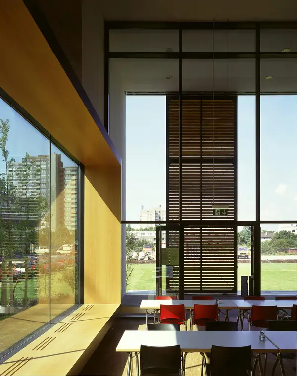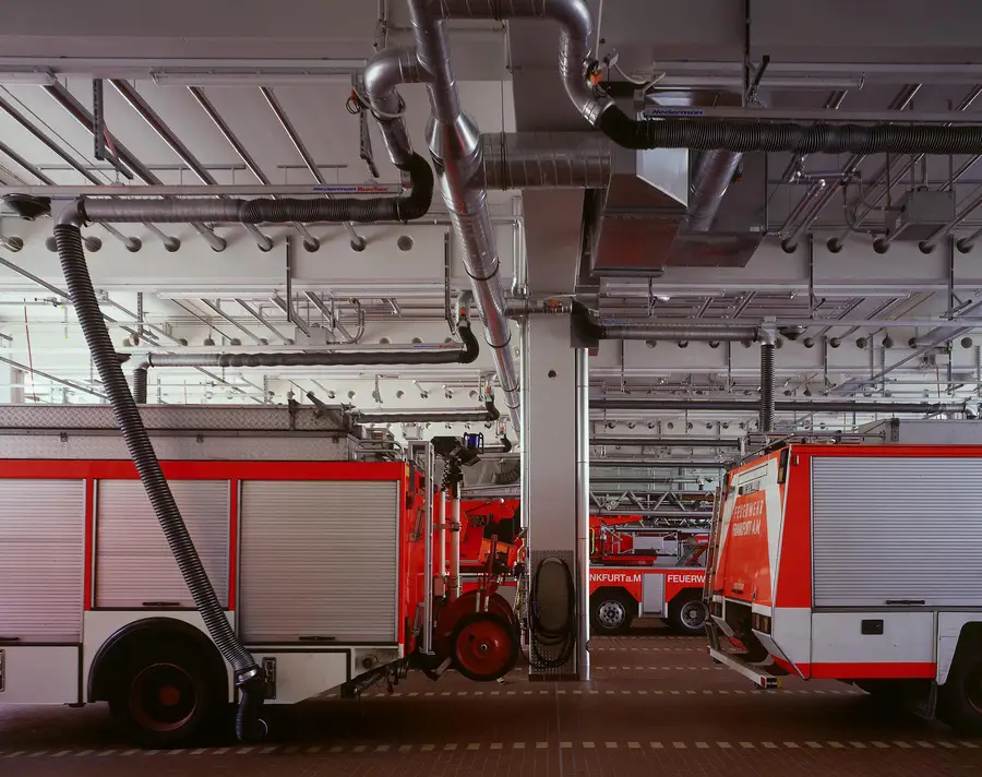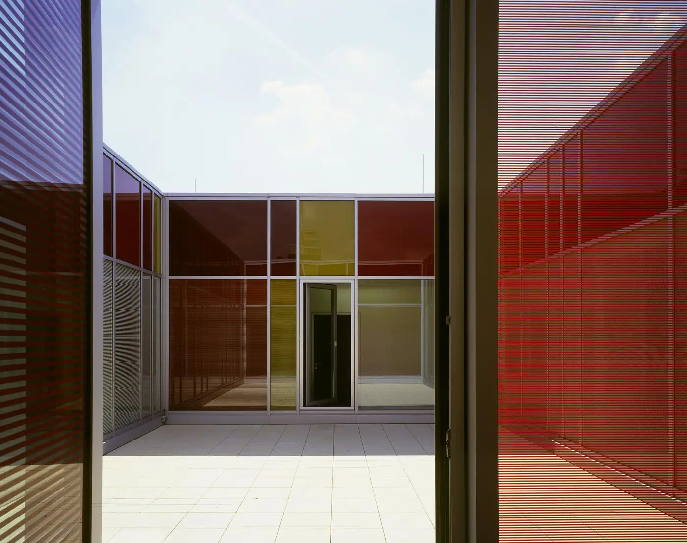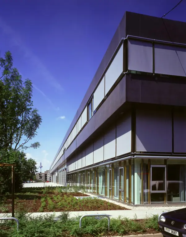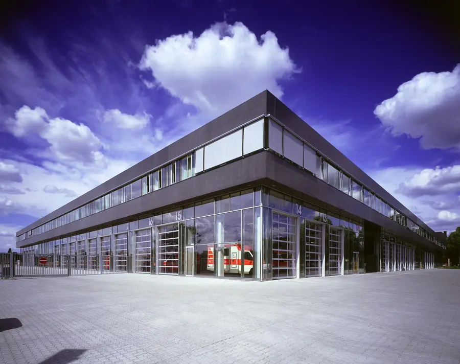 Aus organisatorischen und einsatztaktischen Überlegungen war für die Frankfurter Berufsfeuerwehr der Neubau eines integrierten Zentrums für den Brandschutz, Katastrophenschutz und Rettungsdienst erforderlich. Die besondere Aufgabe der Feuerwehr - der Schutz - und das integrative Konzept des Zentrums bilden in den klassischen architektonischen Metaphern „Hof“ und „Dach“ das architektonische Thema des Entwurfes.