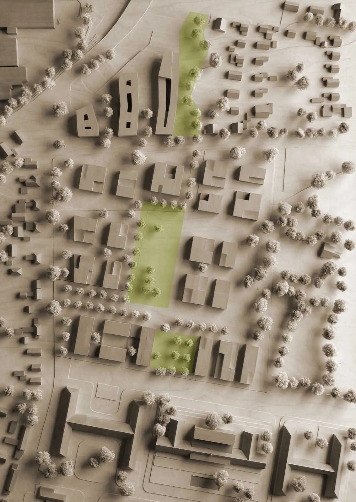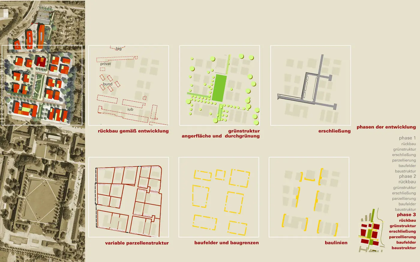 - Ausweisung notwendiger Baulinien zur Raumbildung bei gleichzeitiger Offenheit für die Baufelder.