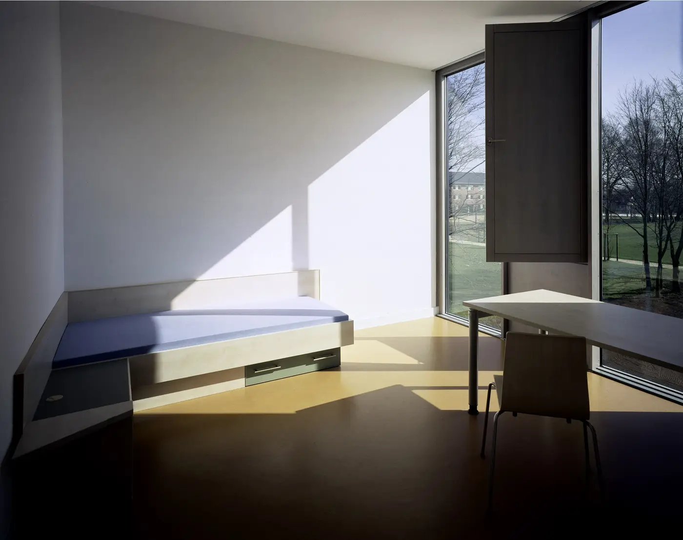 Die Zeilenbauten sind in ihrer Anordnung, Architektur und Freiflächengestaltung von extremer Zweckmäßigkeit geprägt. Die Folie des Militärischen und die Banalität des Vorhandenen bildeten die eigentliche Herausforderung des Entwurfes.