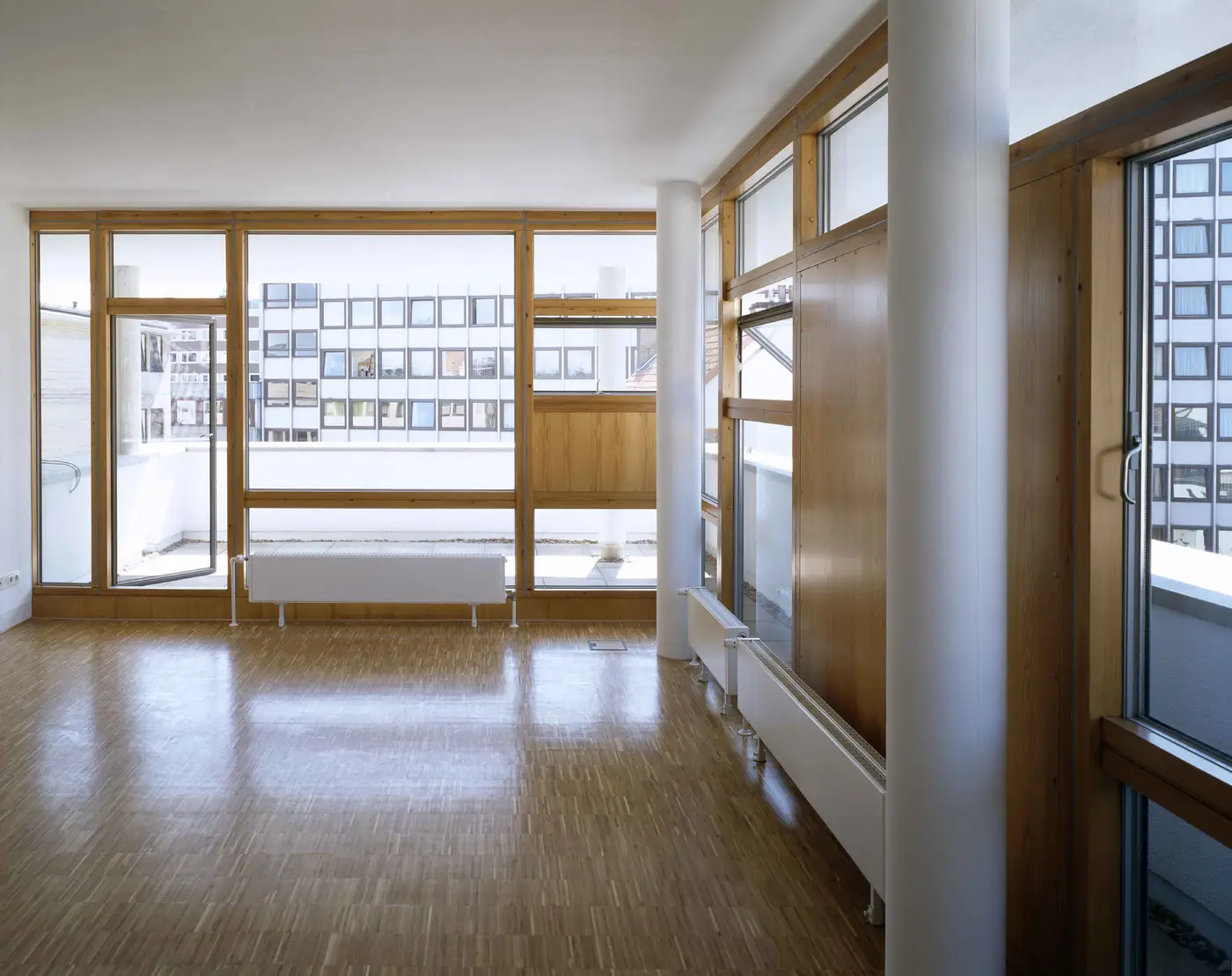 Der Bauherr IG Bau-Steine-Erden vertritt programmatisch und mit eigenen Projekten die Zielsetzung eines ökologisch und architektonisch anspruchsvollen Bauens. Im Rahmen dieser Zielsetzung sollte trotz schwierigen Umfeldes neben einem bestehenden Gebäude ein Neubau errichtet werden, der im Erdgeschoss Erweiterungsmöglichkeiten für die örtliche Vertretung der Gewerkschaft und in den Obergeschossen preiswerte Mietwohnungen bietet.