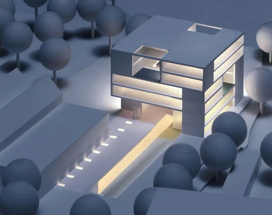 Durch einen solitärartigen Baukörper bleibt der Charakter des umgebenden Parks weitestgehend erhalten. Zweigeschossige Wintergärten, nach allen Seiten ver- setzt angeordnet, öffnen sich zum Park und verklammern Gebäude und Außenraum. Sie ermöglichen vielfältige, zusätzliche Nutzungen und bilden im Winter energiesparende klimatische Zwischenräume.