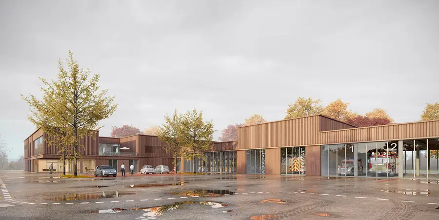 Die neue feuerwehrtechnische Zentrale gliedert sich in zwei Gebäudeteile: