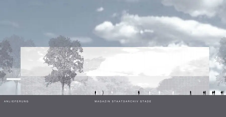 Ziel des Entwurfes ist es, das Staatsarchiv mit einer prägnanten Form, entwickelt aus der Kultur und Geschichte seiner Landschaft, zum städtebaulichen Zeichen und Maßstab seiner Umgebung zu machen.