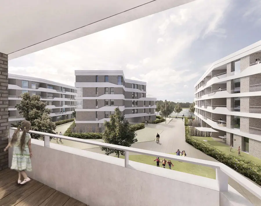 Im Hof wird das orthogonale System aufgegeben, um mit schwingenden Fassaden abwechslungsreiche Räume zu erzeugen, ohne Ausblick und Besonnung zu vernachlässigen.
