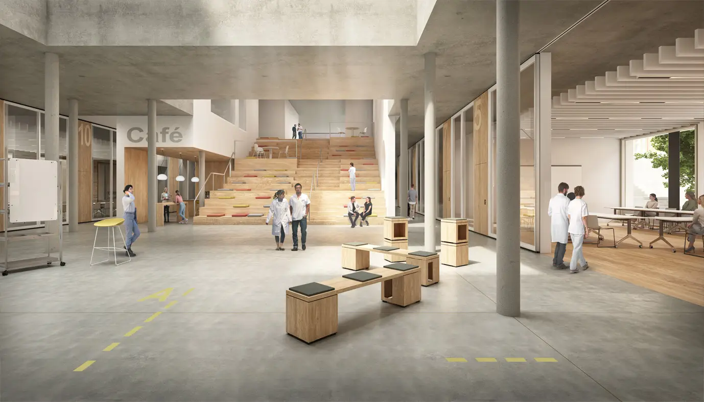 Unser Wettbewerbsentwurf für die UKSH-Verwaltung und -Akademie wurde mit einem Ankauf ausgezeichnet. / Sept. 2023
