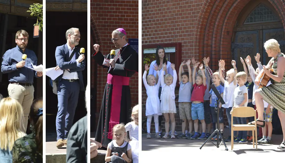 Heute wurde der Neubau der Kita St. Bonifatius in Hamburg Einsbüttel mit kirchlichem Segen von Erzbischof Dr. Stefan Heße eingeweiht - ein tolles Fest bei bestem Wetter - Danke an die Kinder für die schönen Lieder! / Jun. 2017