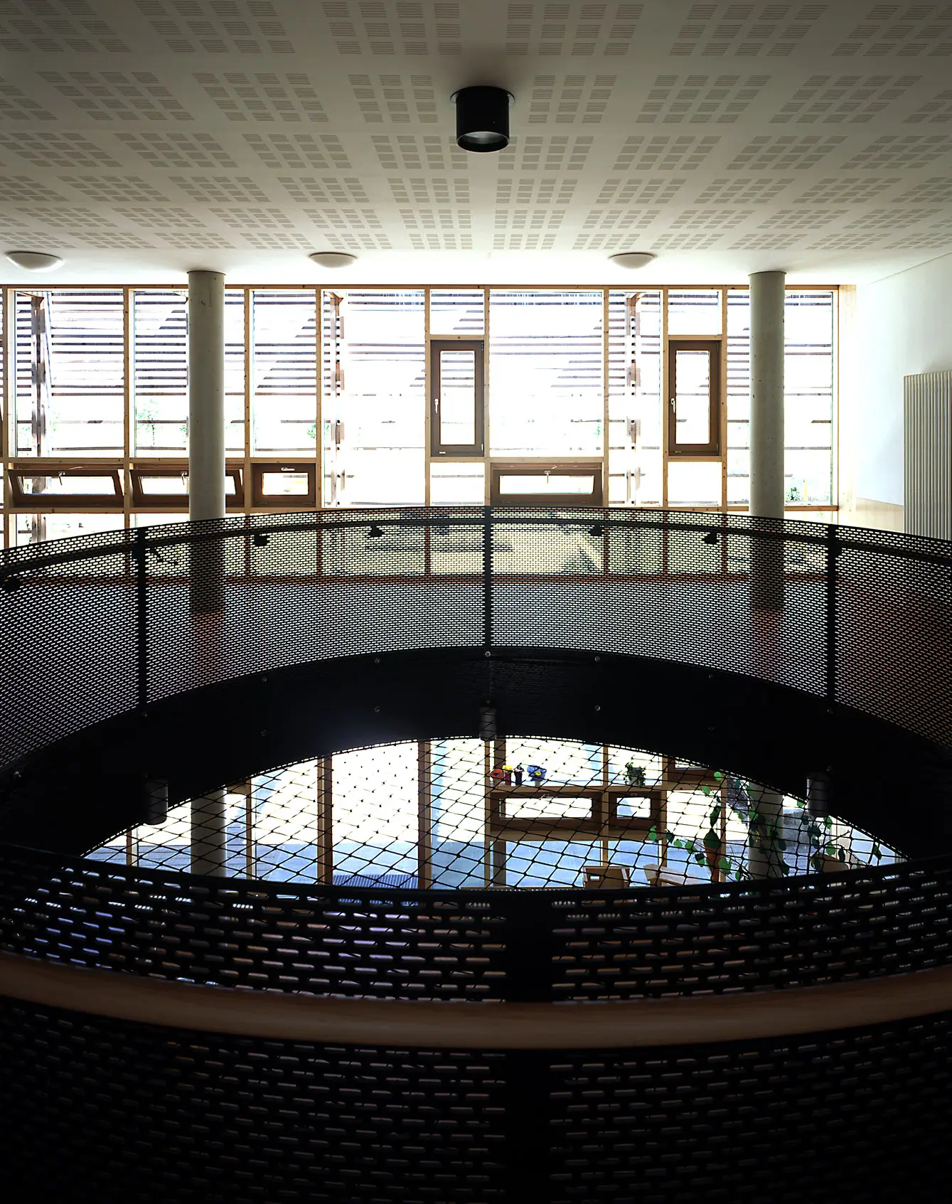 Im Rahmen der Weltausstellung EXPO 2000 entstand ein neuer Stadtteil in Hannover: Kronsberg. Am südlichen Rand dieses Stadtteils und am Übergang von Bebauung zur Landschaft war eine Kindertagesstätte für fünf Gruppen zu planen. Ausgangspunkt waren die sterbende, ländliche Charakteristik des Ortes und die geplante Umgebung in Form dreigeschossiger Wohnblöcke. Mit der einfachen, kubischen Form, einer im Süden vorgestellten zweigeschossigen Laube und dem Material Holz versucht der Entwurf die ländliche Geschichte des Ortes zu reflektieren und zum Teil der sinnlichen Wahrnehmung für die Kinder zu werden.