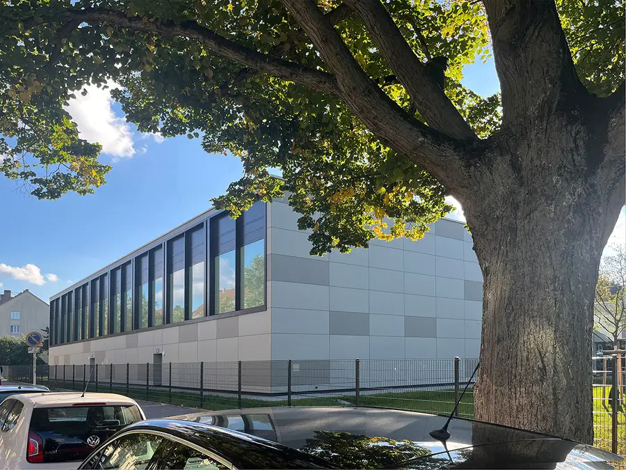 Die Baumaßnahme wird in zwei Bauabschnitten auf zwei Grundstücken realisiert. Nach Fertigstellung des Schulgebäudes auf dem Schlossparkgrundstück wird die Sporthalle auf einem Nachbargrundstück errichtet, auf dem während der Bauzeit eine provisorische Containerschule untergebracht war.