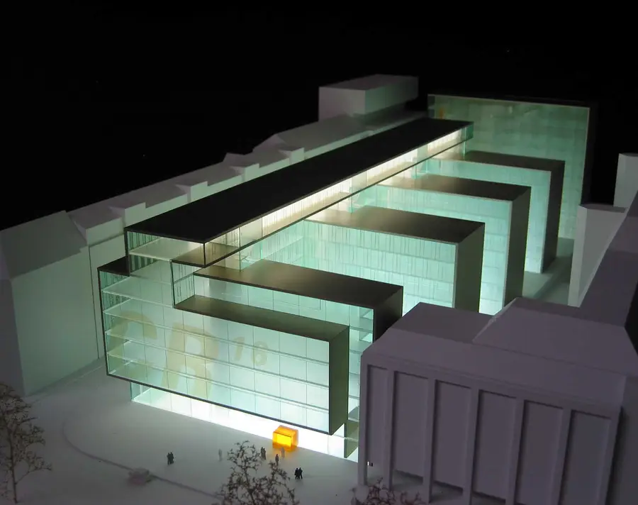 Der Entwurf versucht diesen Randbedingungen durch einen ruhigen, aus der Blockstruktur entwickelten Baukörper für das Bürohaus und eine radikal minimalistische und moderne Architektur gerecht zu werden, das seinen städtebaulichen Auftritt an der Caffamacherreihe inszeniert.