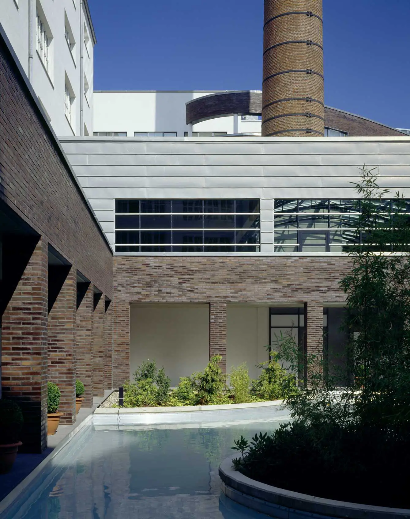 Das Materialkonzept der Altbauten: Straßenraum=Stein, Innenbereich=Putz wurde übernommen und für die neue Blockkonzeption uminterpretiert.