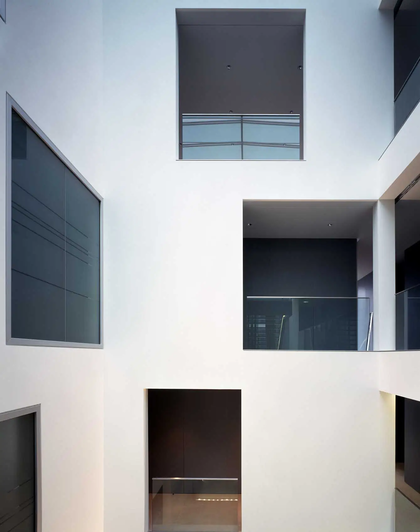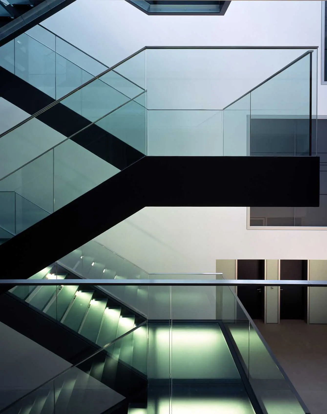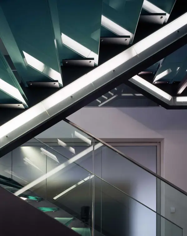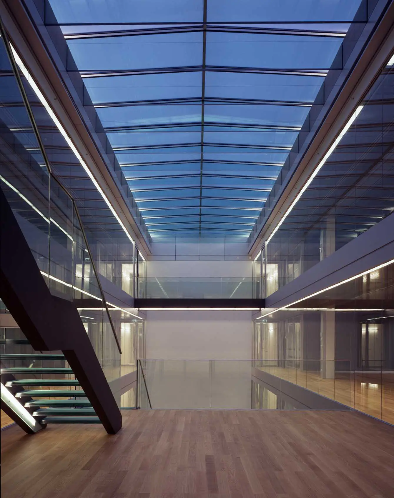 Besonderes Merkmal der überwiegend in Großräumen angeordneten Büros sind die Licht durchfluteten Hallen, die eine großzügige und kommunikative Atmosphäre erzeugen.