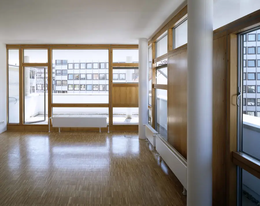 Der Bauherr IG Bau-Steine-Erden vertritt programmatisch und mit eigenen Projekten die Zielsetzung eines ökologisch und architektonisch anspruchsvollen Bauens. Im Rahmen dieser Zielsetzung sollte trotz schwierigen Umfeldes neben einem bestehenden Gebäude ein Neubau errichtet werden, der im Erdgeschoss Erweiterungsmöglichkeiten für die örtliche Vertretung der Gewerkschaft und in den Obergeschossen preiswerte Mietwohnungen bietet.