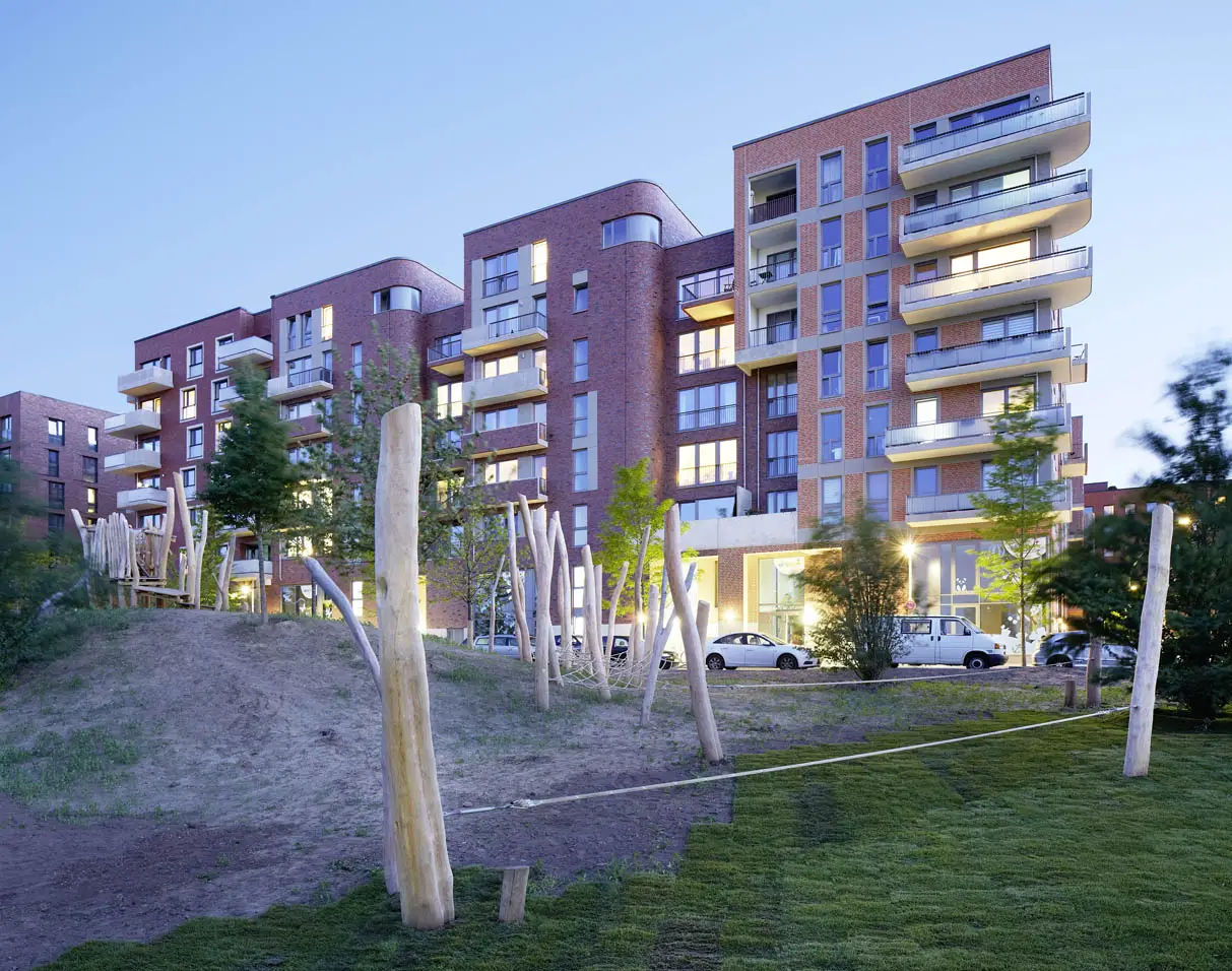 Entsprechend der Vorgaben der Hamburgischen Wohnungsbauförderrichtlinien sind ein Drittel der Wohnungen als geförderter Wohnungsbau in Passivhausbauweise ausgeführt. Eine im Erdgeschoss am Lohsepark befindliche Kindertagesstätte macht das Wohnen für Familien attraktiv.