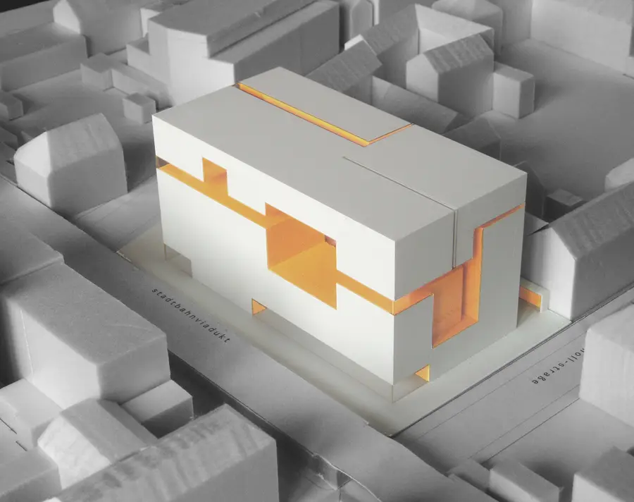 Städtebaulich und architektonisch respektiert dieser kraftvolle Baukörper die historische Blockstruktur, verschafft sich allerdings durch seine Höhe und ein leichtes Abrücken von der Brandwand und den Straßenfluchten eine eigene Position und Bedeutung. Er prägt damit nicht nur seine Umgebung, sondern wirkt auch weit in den Stadtraum hinein.