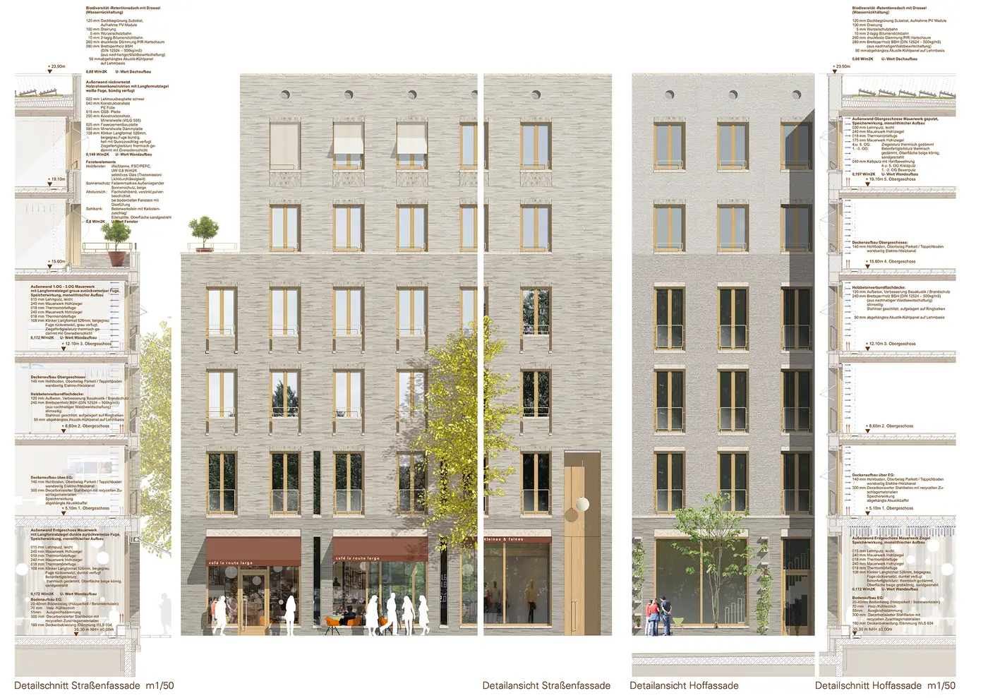 Der Entwurf wird aus dem Inneren heraus als flexibel nutzbares „Regal“ entwickelt. Die Hülle wird aus langlebigen, repräsentativen, aber regelmäßig gefügten monolithischen Mauerwerksfassaden gebildet, die das Gebäude zukünftig angemessen in den historischen Stadtraum der mittleren Spreeinsel integrieren.