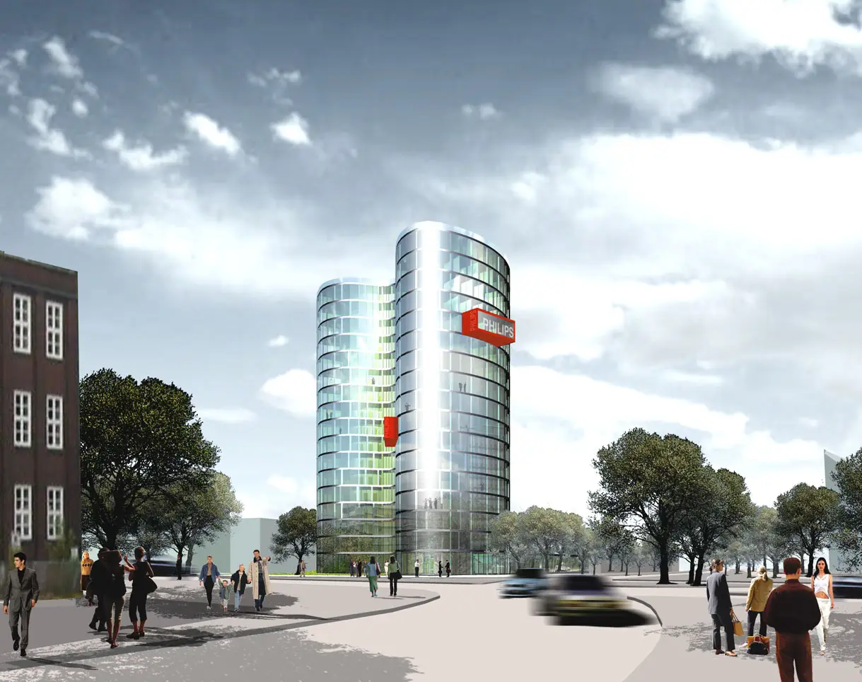 Aus den ehemaligen Wehranlagen der Stadt hervorgegangen, wurde der Grünzug an der Sechslingspforte durch die offene Struktur der Krankenhausbauten zu einem Kontrapunkt zu den engen Blöcken der Stadt. Der Solitär des Bürohauses wurde auf einer organischen Grundform entwickelt, die ihm im heterogenen Umfeld eine elegante Kraft und Eigenständigkeit verleiht.
